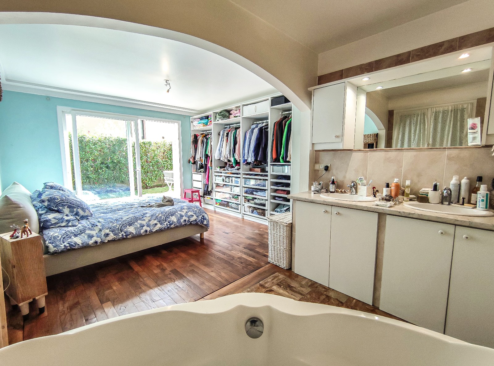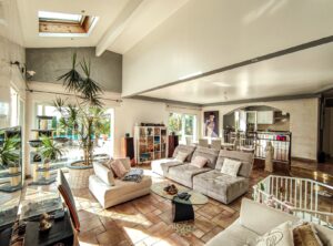 La villa s’étend sur trois niveaux offrant des espaces de vie généreux et modulables. Dès le rez-de-chaussée, vous découvrirez un vaste salon-séjour de 70 m², baigné de lumière et ouvert sur une cuisine, formant ainsi un ensemble convivial et idéal pour recevoir. Ce niveau comprend un salon avec une belle hauteur sous plafond donnant accès à un extérieur exceptionnel de 1230 m², agrémenté d’une terrasse élégante et d’une piscine.